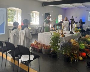 Erntedankfest: Beim Familiengottesdienst zum Erntedankfest im Remblinghauser Jakobushaus gab es tierischen Besuch. Eichhörnchen Fips, eine neugierige Handpuppe mit ständigen Appetit, weiß nun, dass Pommes aus Kartoffeln bestehen und wir nicht nur dem Landwirt für seine Arbeit danken dürfen. Vielmehr dürfen wir Gott für sein Zutun in unsere vielfältige, bunte Natur und gute Ernten danken. Für die faire Verteilung der Lebensmittel sind allerdings wir Menschen selbst verantwortlich. Nach dem Familiengottesdienst hat der Pfarrgemeinderat zum gemeinsamen Mittagessen eingeladen. Dies wurde gern von vielen Besuchern angenommen und bei Gesprächen zwischen Jung und Alt herrschte eine lockere, mit Dankbarkeit erfüllte Stimmung. M. Stockhausen
