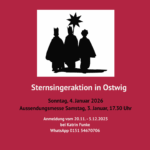 Sternsingeraktion: Zum Vorbereitungstreffen, Mittwoch, 26. November, um 15.30 Uhr im Jakobushaus, sind alle Kinder ab der 2. Klasse herzlich eingeladen. In gemütlicher Runde mit Waffeln und Apfelpunsch, werden wir uns auch gemeinsam einen Film anschauen und dabei von Willi erfahren, welche Projekte dieses Mal durch die Sternsingeraktion unterstützt werden. Wir freuen uns, wenn wieder viele Gruppen am Sonntag, den 4. Januar 2026 Gottes Segen in unsere Gemeinde bringen! Euer Sternsinger -Team Maria Rettler, Cordula Schulte und Silke Schulte