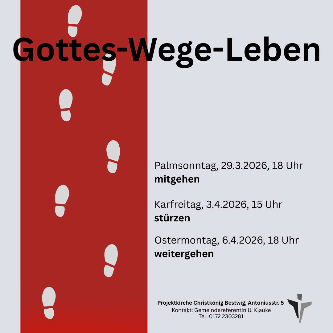 Meschede St. Walburga: An den Freitagen 6 Uhr Kreuzweg zur Klause (Treffpunkt am „Blutschwitzenden Heiland“), anschl. Hl. Messe in der Klausenkapelle.