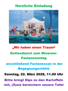 Rambeck: Dienstag, 3. März, 18 Uhr (in der Kirche) und Dienstag, 24. März, 18 Uhr (im Pfarrheim). Im Anschluss an diese Kreuzwegandacht lädt das Gemeindeteam zu einer kurzen Agape-Feier mit Brot und Wein ein.