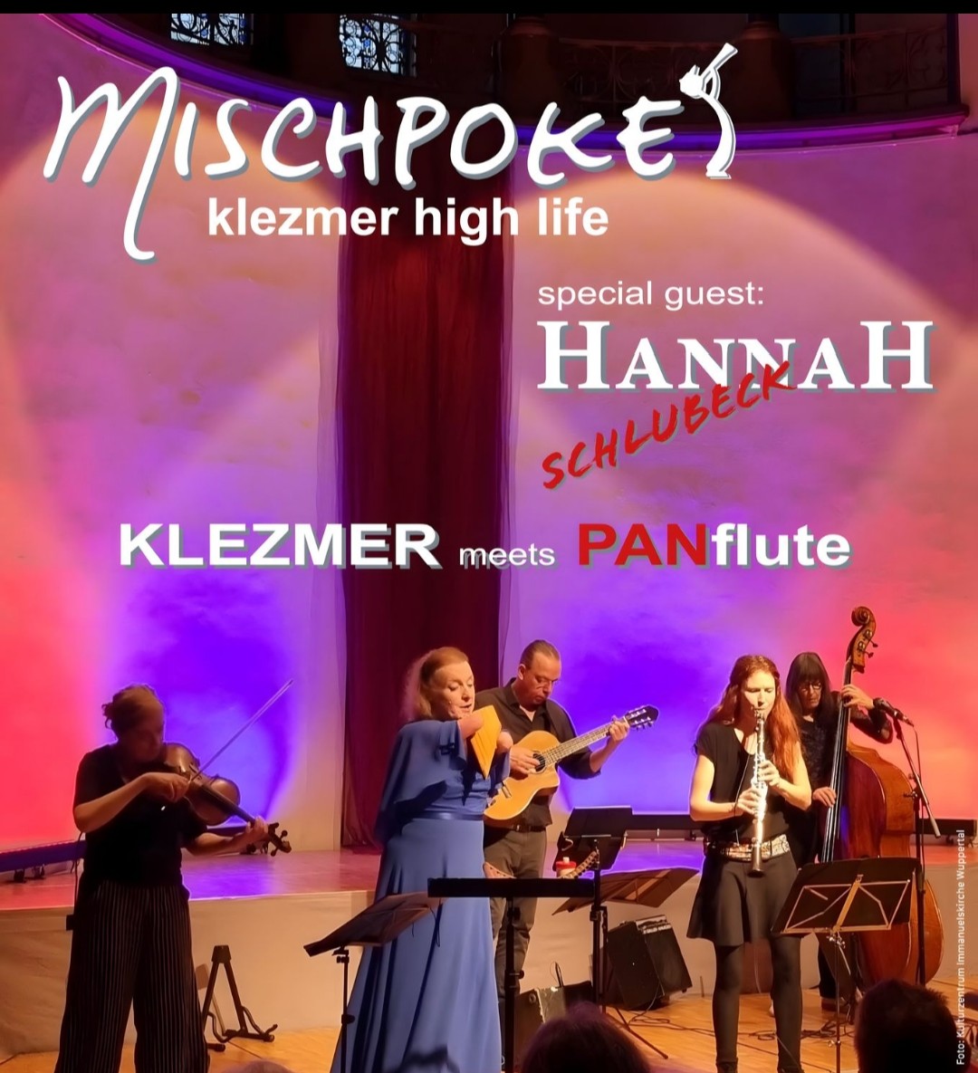 Zu Ostern gastierte Mischpoke in der Elbphilharmonie Hamburg mit zwei ausverkauften Konzerten gemeinsam mit der Panflötenvirtuosin Hannah Schlubeck. Nun gibt das Ensemble gemeinsam mit der im Kreis Höxter lebenden Hannah Schlubeck am Samstag, 31. Januar um 19 Uhr ein Konzert in der Alten Synagoge Meschede.